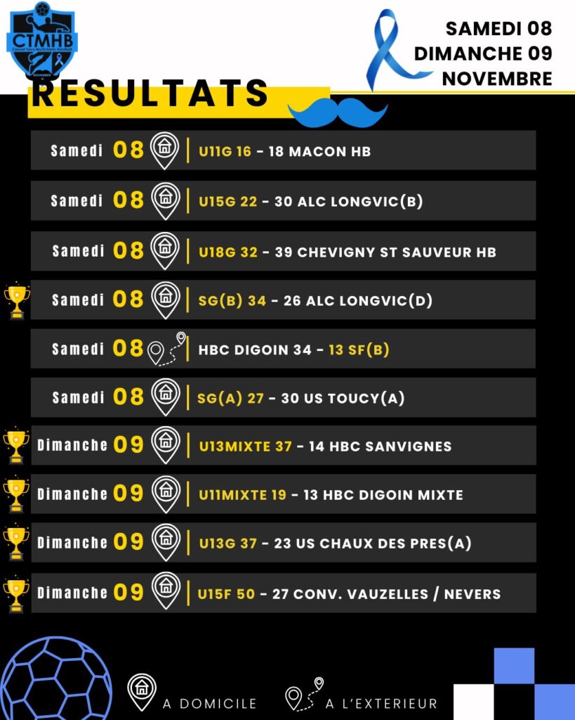 Résultats du week-end : 08 & 09 Novembre