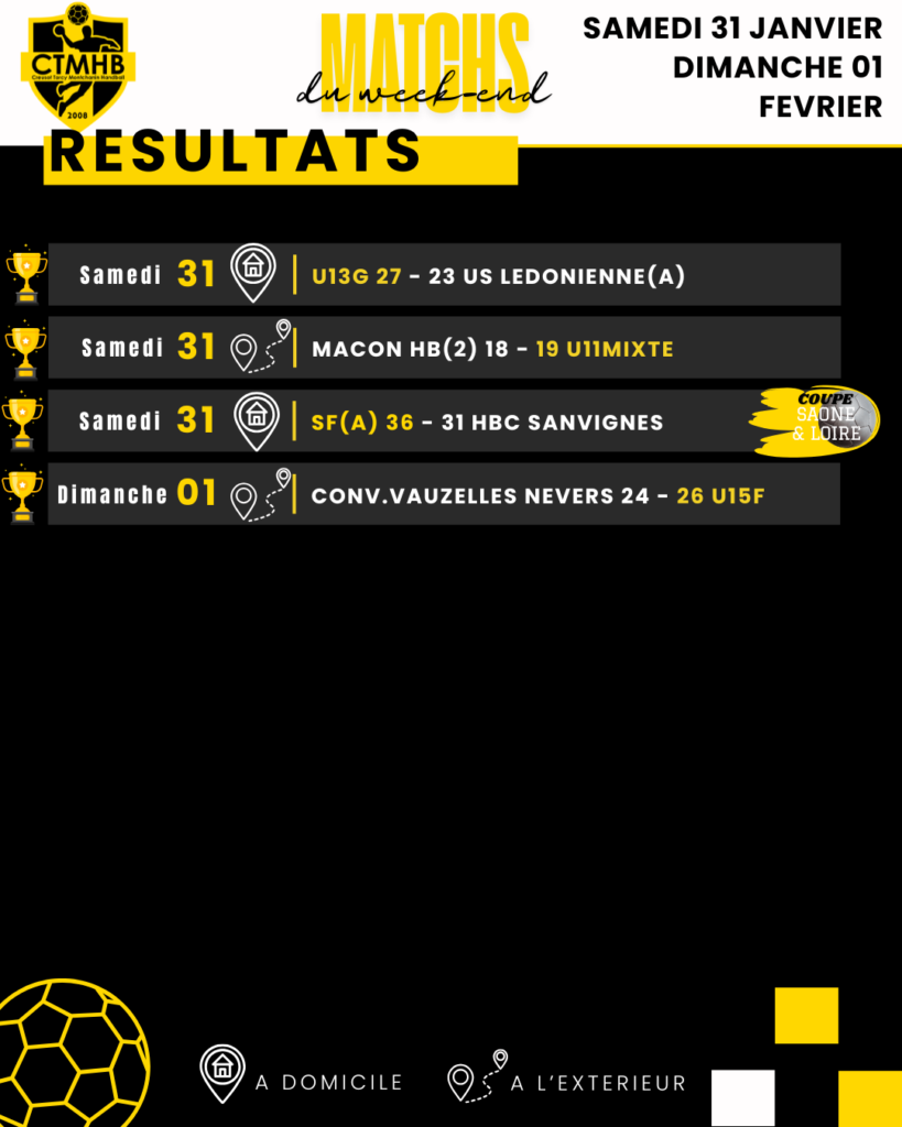 Résultats du week-end : 31 Janvier & 1er Février